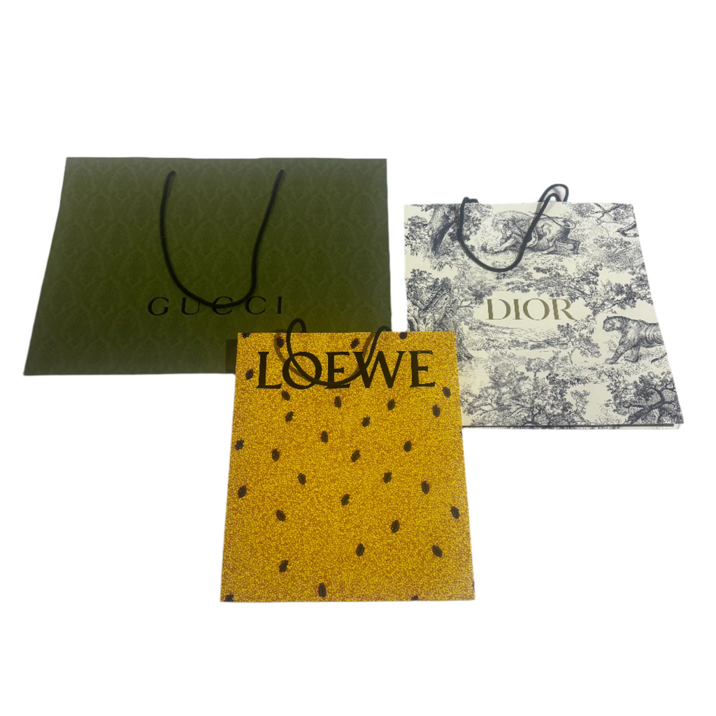 Description designer shopping bags, set of 3, Loewe, Gucci & Dior