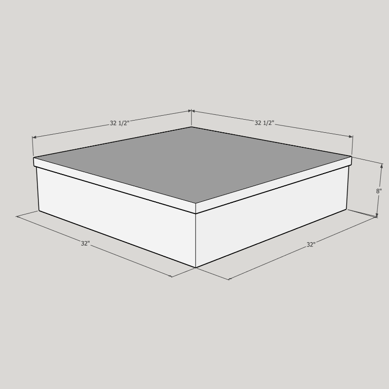 Dimensions 32" wide x 32" deep x 8" high