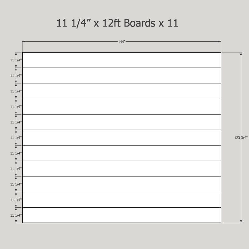 Plank Size 11 1/4"      (10ft boards x 11) (120 Sqft)