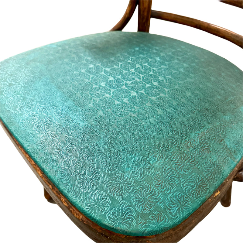 Description wood & green arm chair